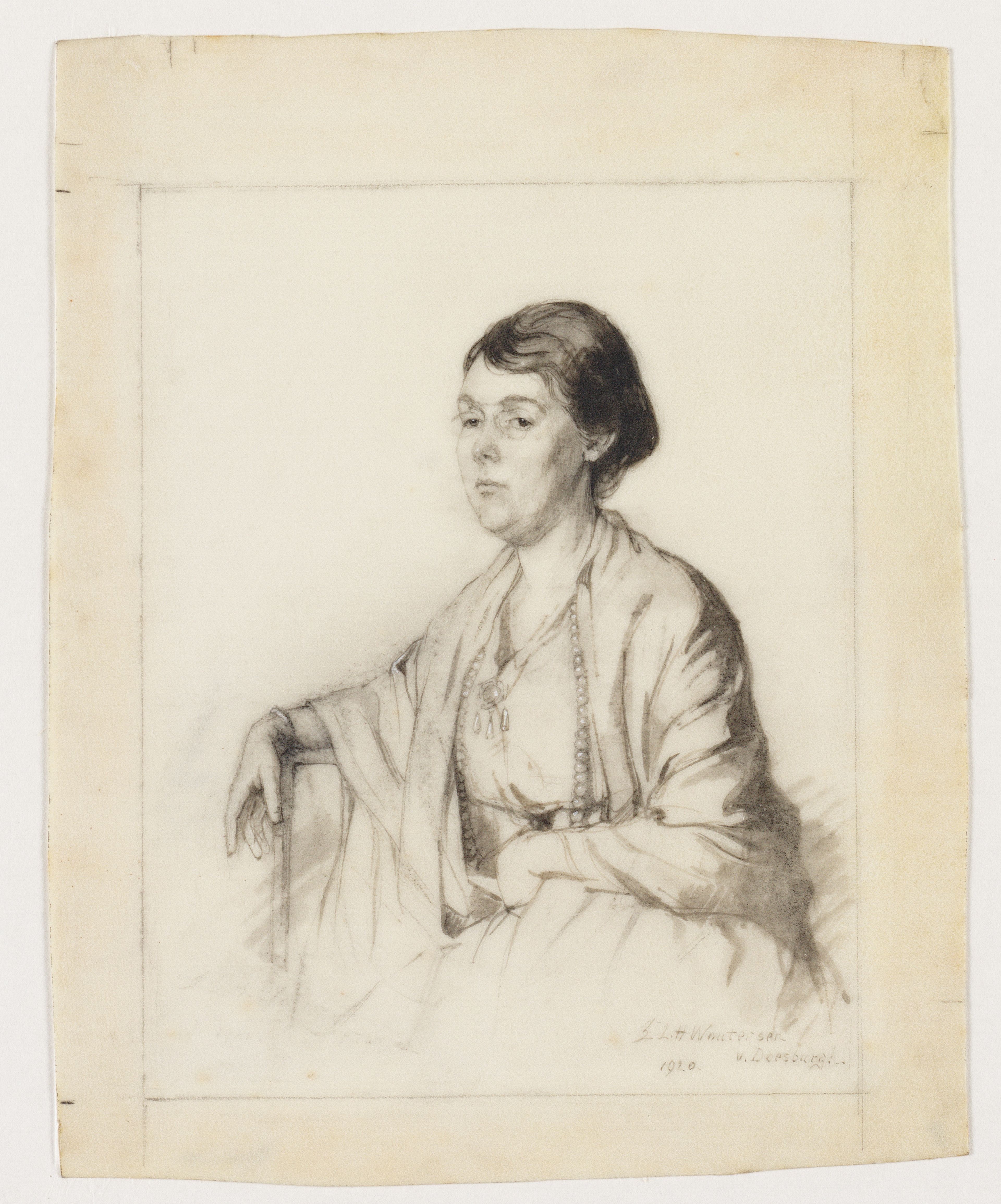 Nadat Elsa Woutersen-Van Doesburgh in Amsterdam studeerde, in Brussel werkte en in Stuttgart een eigen atelier runde, vestigt ze zich na haar huwelijk in 1911 in Haarlem. Vanuit daar schildert en tekent ze stadsgezichten, Haarlemse hofjes en stillevens. Teylers Museum heeft een bloemstuk van haar hand in de collectie, maar vooral interessant zijn de 39 portretten die ze tekende van Nederlandse werkende vrouwen. Haar ‘Vrouwen van beteekenis in ons vaderland’ worden regelmatig gepubliceerd in het maandelijkse damesblad ‘De Vrouw en haar Huis’. De originele tekeningen schenkt ze aan Teylers Stichting.
